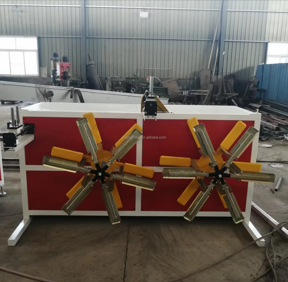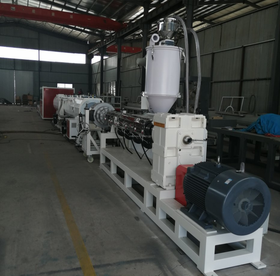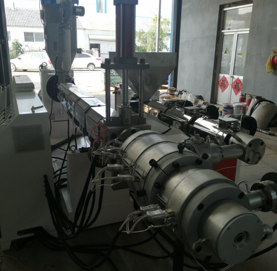 Он производит одноцветные трубы с помощью монохромного экструдера, а многоцветные трубы — с помощью нескольких экструдеров и соэкструзионной головки и пресс-формы. Его также можно использовать для производства труб большого диаметра, таких как водопроводные и газовые трубы.